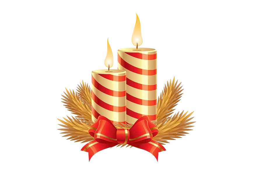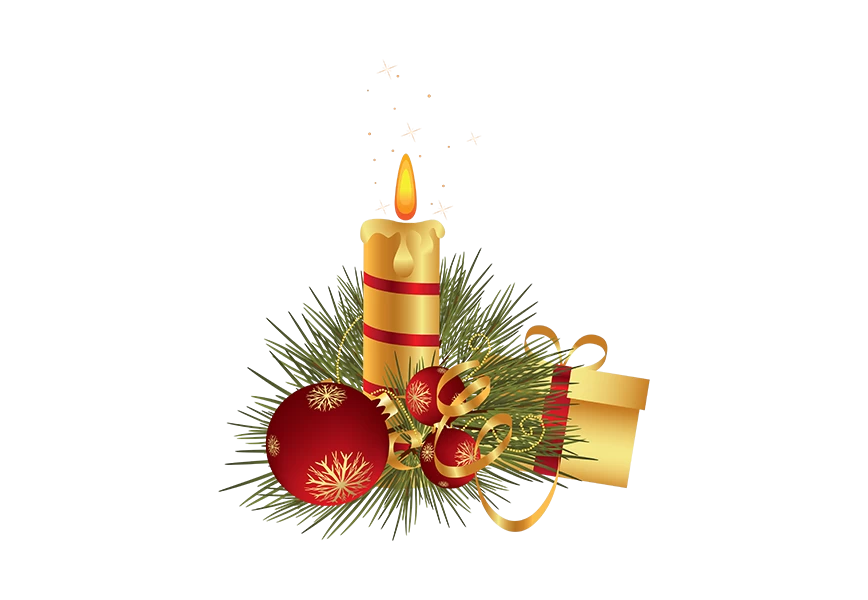 Christmas composition with a burning candle two red Christmas balls and Christmas tree twigs transparent background