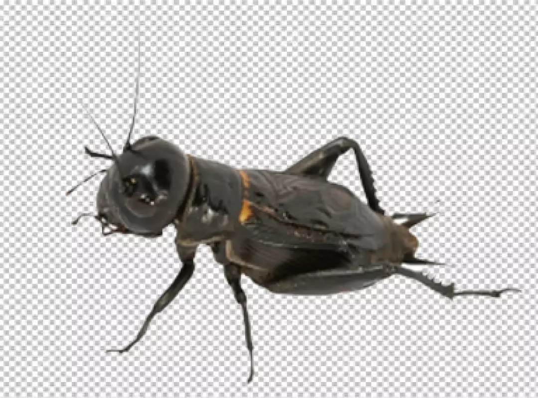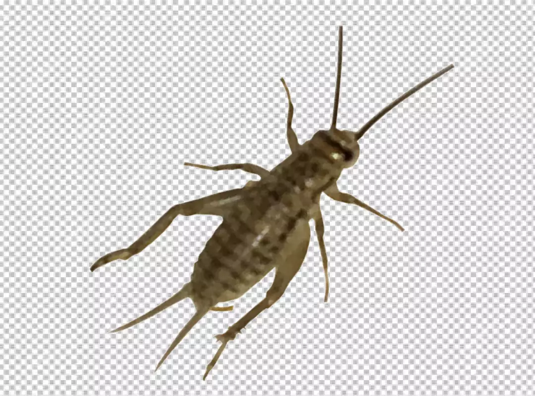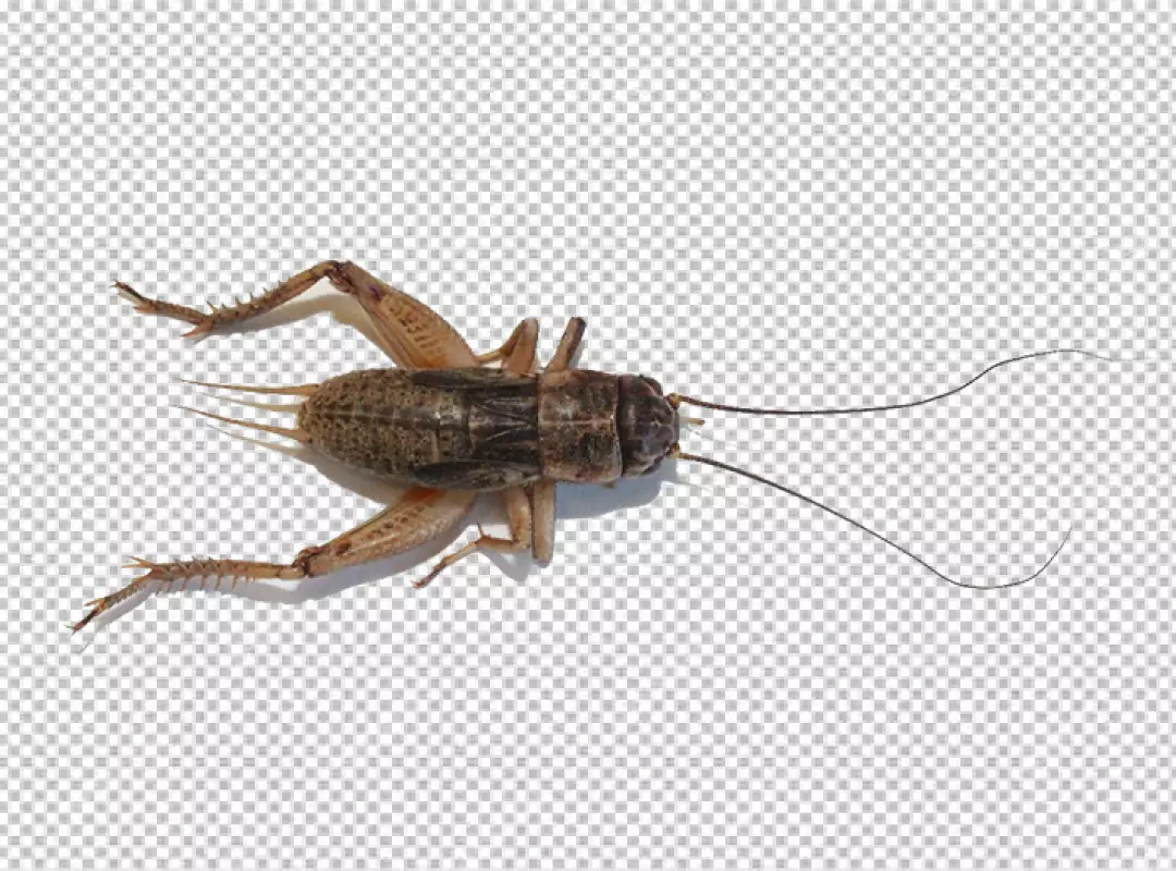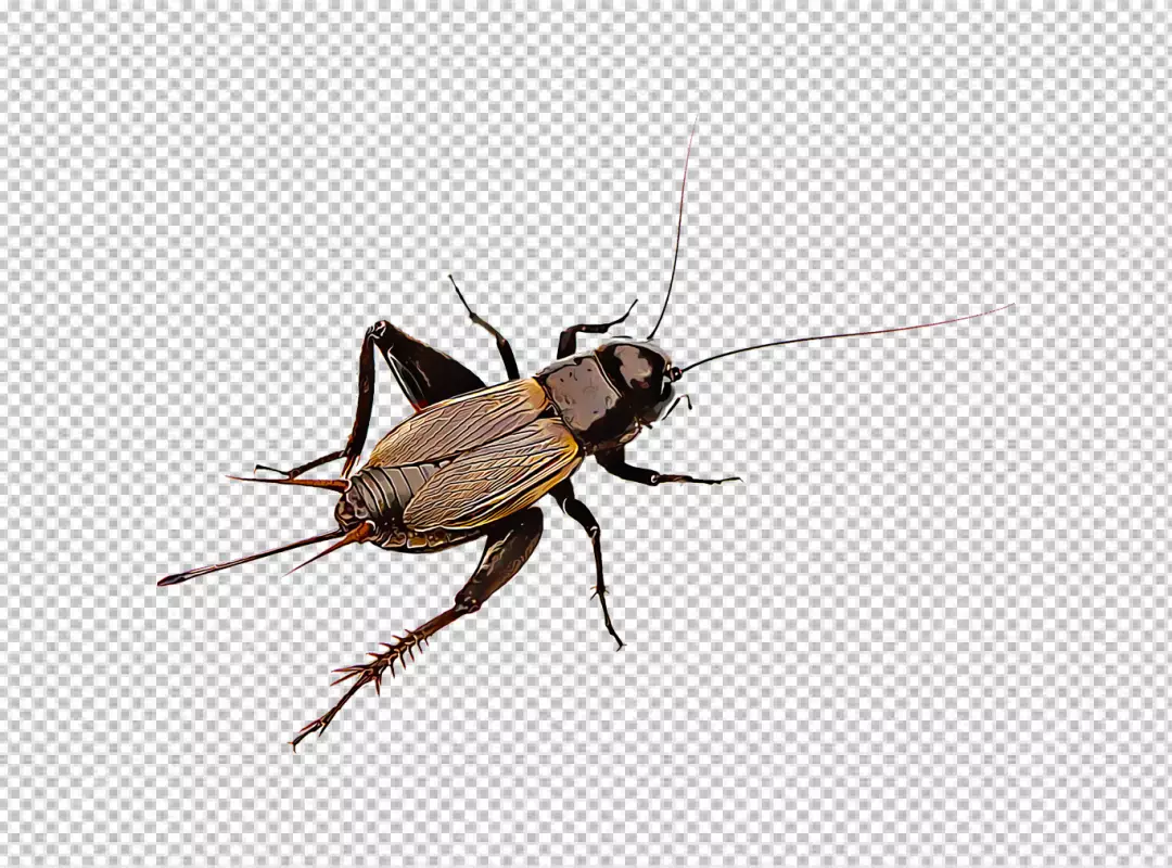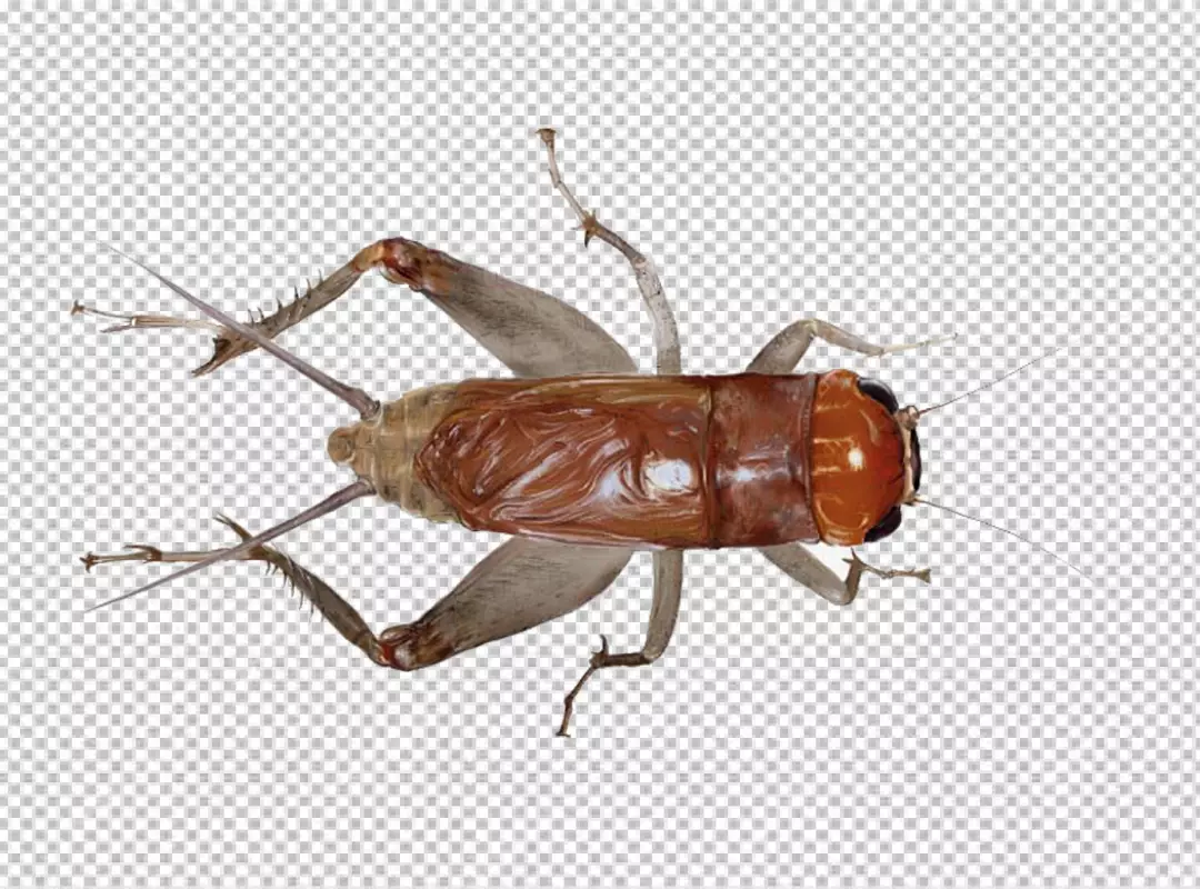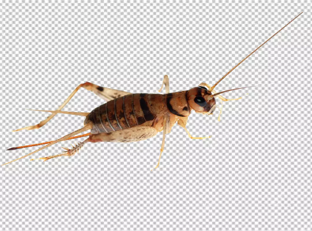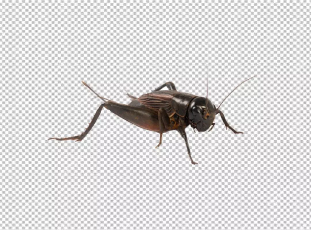 The Cricket insect is brown in color, with black stripes on its back and legs
