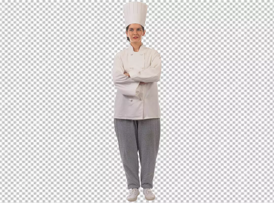 Happy male Indian chef with crossed arms wearing white chef uniform on transparent