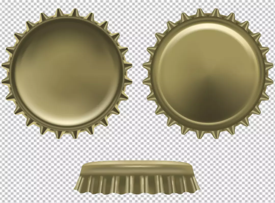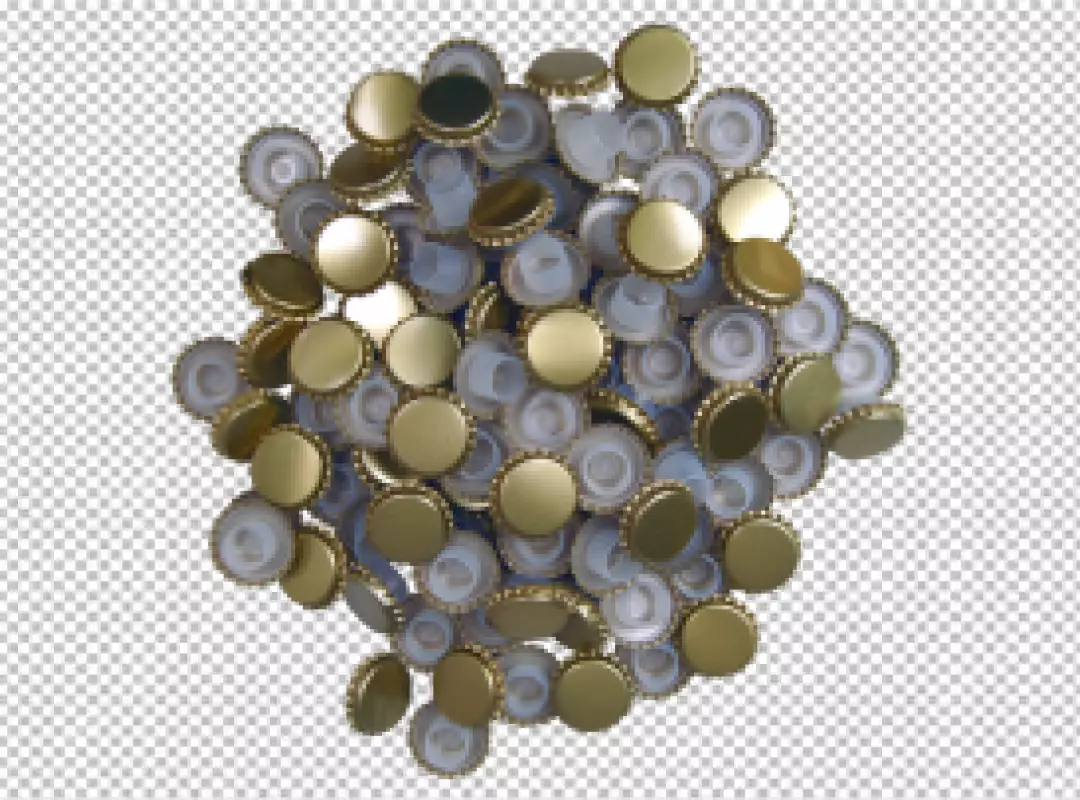 Golden beer crown caps transparent background